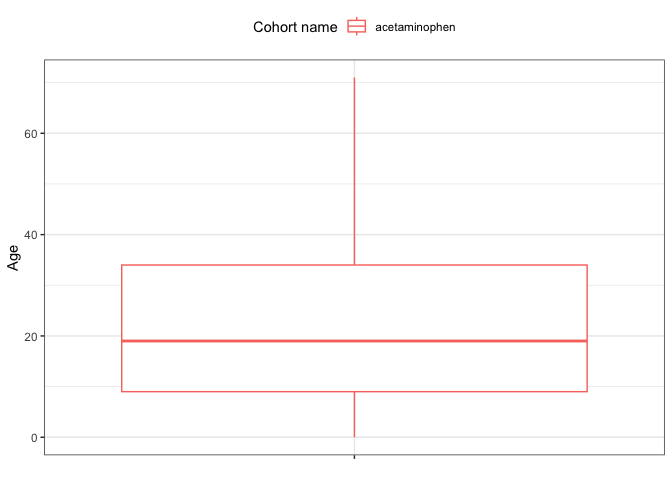 To ensure the analysis is reproducible and self-contained, we generate a mock Common Data Model (CDM) using the DrugUtilisation package. This simulated dataset mimics the structure of a real OMOP CDM, providing a safe and standardized environment for developing and testing analytical code. After creating the CDM, we define a cohort of interest—in this case, individuals exposed to acetaminophen. This step is vital for establishing the study population that will be characterized in the subsequent steps.